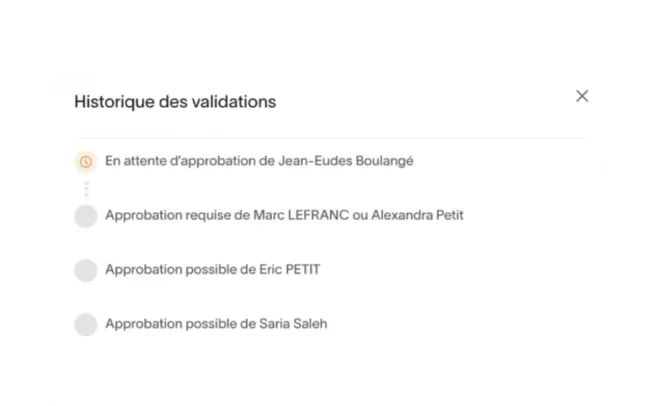 Mantenga el control de sus gastos personalizando sus circuitos de validación. Cree pasos específicos y establezca umbrales adaptados a sus necesidades.