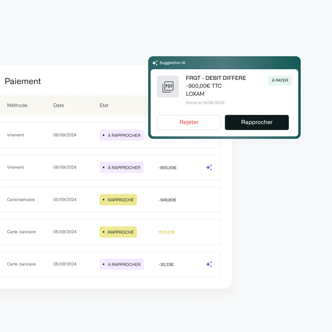 Solicita una demostración- rapprochement auto entre transaction bancaire et facture ;