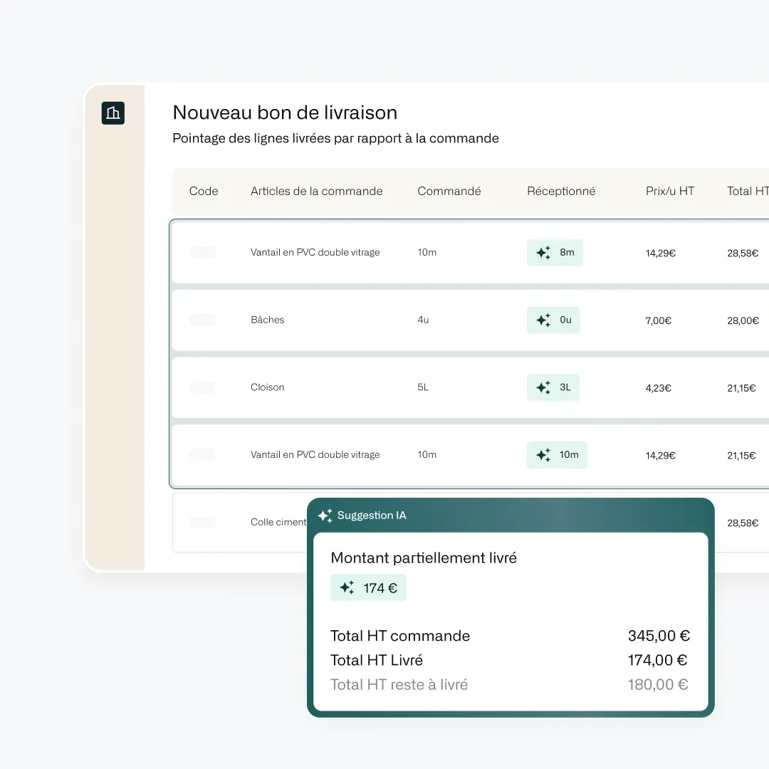 - Mise à jour automatique : le statut des commandes se met à jour automatiquement en fonction des quantités reçues après ajout d'un bon de livraison.