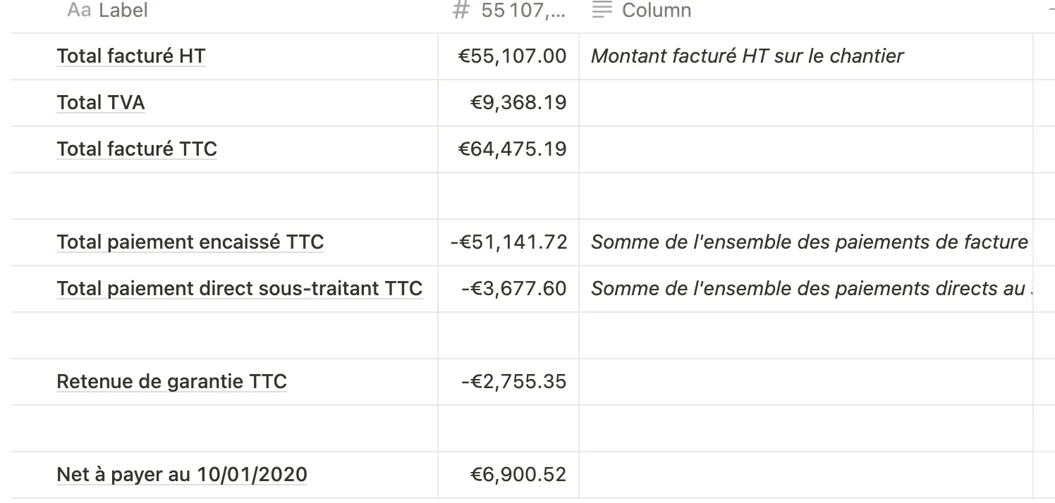 - Le récapitulatif des acomptes : Ce document répertorie les acomptes versés à l'entrepreneur au fil du chantier.
